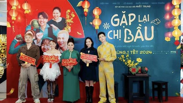 Gặp lại chị bầu khởi chiếu tại các rạp trên toàn quốc từ Mùng 1 Tết Giáp Thìn, tức ngày 10/2/2024, cùng với Mai (Đạo diễn Trấn Thành), Trà (Đạo diễn Lê Hoàng) và Sáng đèn (Đạo diễn Hoàng Tuấn Cường).