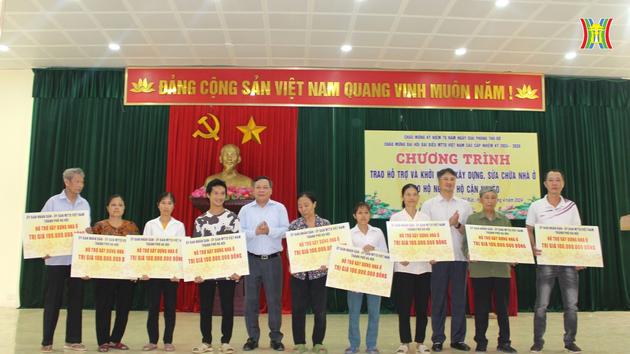 Phó Bí thư Thành ủy Nguyễn Văn Phong, Phó Chủ tịch Ủy ban Mặt trận Tổ quốc Thành phố Hà Nội Đặng Thị Phương Hoa thay mặt lãnh đạo thành phố trao tặng biểu trưng hỗ trợ xây dựng, sửa chữa 48 ngôi nhà cho hộ nghèo, hộ cận nghèo. Trong đó, hỗ trợ xây dựng 33 ngôi nhà (100 triệu đồng/nhà), sửa chữa 15 ngôi nhà (60 triệu đồng/nhà).