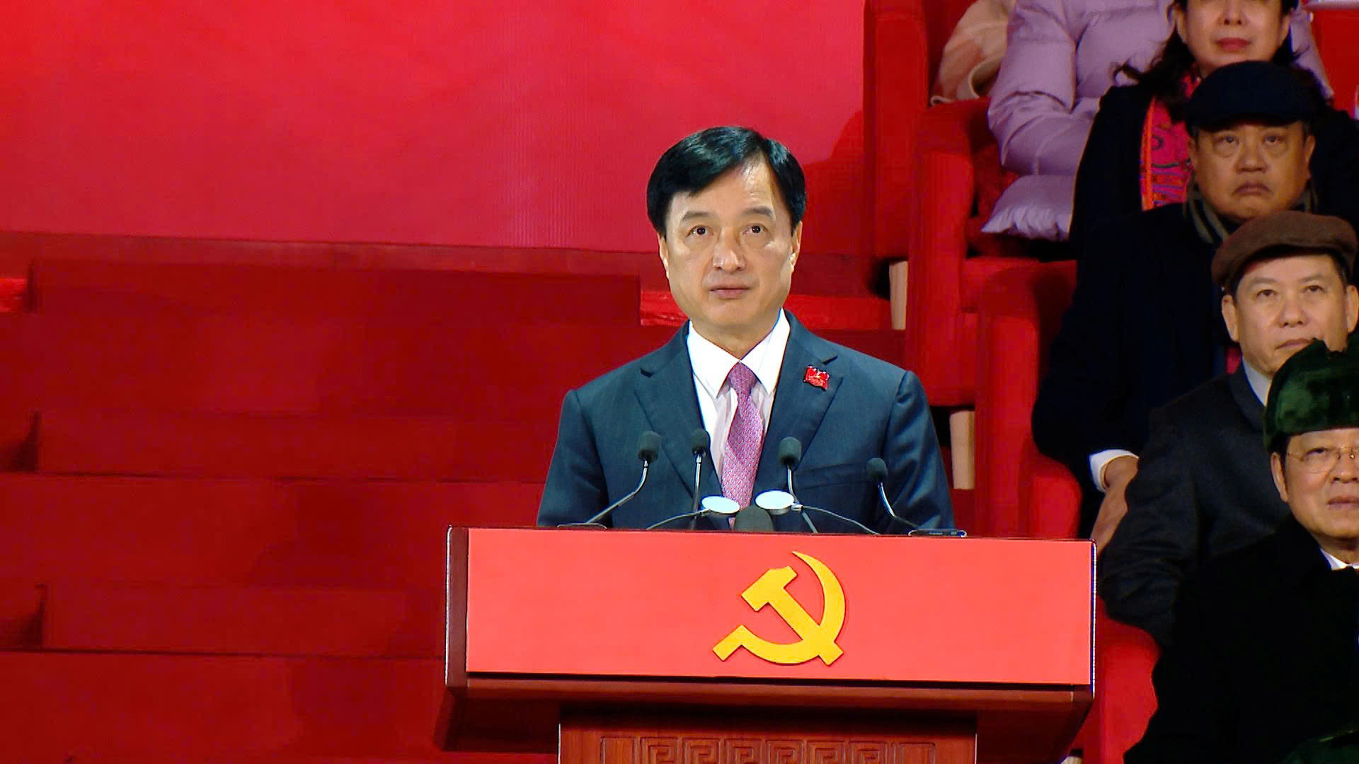 Bí thư Thành ủy nhấn mạnh: Chương trình nghệ thuật đặc biệt "Dưới lá cờ vẻ vang của Đảng" hôm nay là lời chúc mừng, là tấm lòng thành kính gửi tới thành công của Đại hội, đồng thời cũng là lời nhắc nhở chúng ta về con đường phía trước. Dẫu còn nhiều khó khăn, thách thức, nhưng chúng ta có một điểm tựa vững chắc, đó là sự lãnh đạo sáng suốt của Đảng, sức mạnh đại đoàn kết toàn dân tộc, truyền thống ngàn đời của ông cha và khát vọng cháy bỏng về một Việt Nam phồn vinh, hạnh phúc.
