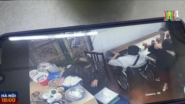 Trích xuất camera tại quán, hình ảnh cho thấy người khuyết tật được nhân viên quán thu dọn đồ để xe lăn có thể di chuyển vào quán